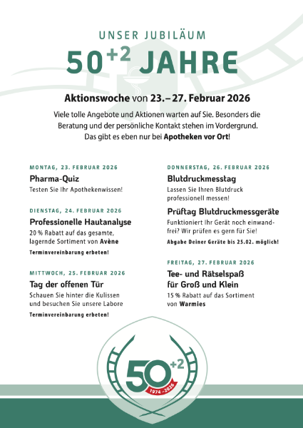 Unsere Apotheke hat sich seit ihrer Gründung 1974 als kompetenter Ratgeber und Wegbegleiter sowohl ihrer Kunden als auch ihrer Partner im Gesundheitswesen etabliert. Mit Fortführung des Betriebes von Dr. Thomas Wellenhofer im Jahr 1997 wurden bis heute die Geschäftsfelder weiter ausgebaut und die Services und Leistungen an die Bedürfnisse und Wünsche unserer Kunden angepasst.
